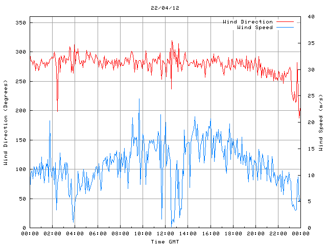 - Max Wind Speed: 24.5 ms-1 Time: 9:41:09 GMT