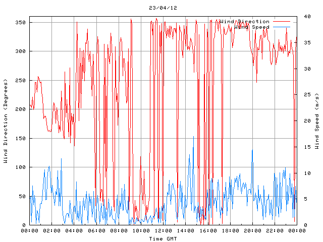 - Max Wind Speed: 17.0 ms-1 Time: 14:41:09 GMT