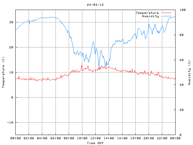- Max Temp: 13.0 °C Time: 9:56:09 GMT