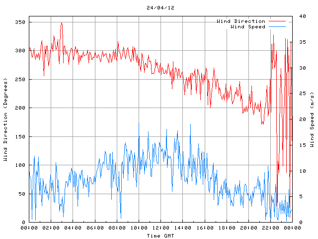 - Max Wind Speed: 19.2 ms-1 Time: 10:01:09 GMT