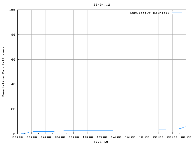 - Max Rainfall Rate: 6.00 mm h-1 Time: 23:56:09 GMT