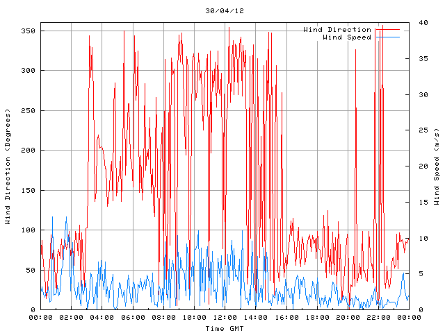 - Max Wind Speed: 13.0 ms-1 Time: 0:46:09 GMT