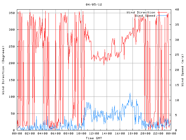 - Max Wind Speed: 12.3 ms-1 Time: 17:36:09 GMT
