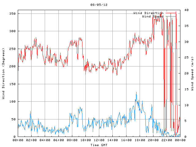 - Max Wind Speed: 14.1 ms-1 Time: 17:31:09 GMT