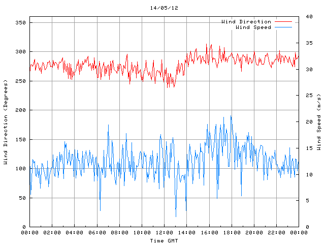 - Max Wind Speed: 21.2 ms-1 Time: 17:56:09 GMT