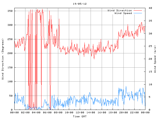 - Max Wind Speed: 9.3 ms-1 Time: 20:26:09 GMT