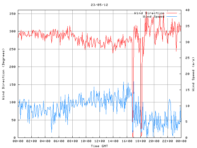 - Max Wind Speed: 17.6 ms-1 Time: 17:01:09 GMT