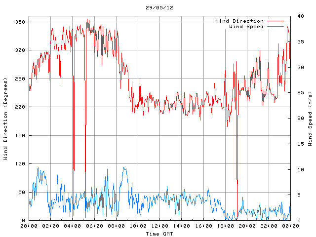 - Max Wind Speed: 10.5 ms-1 Time: 8:41:09 GMT