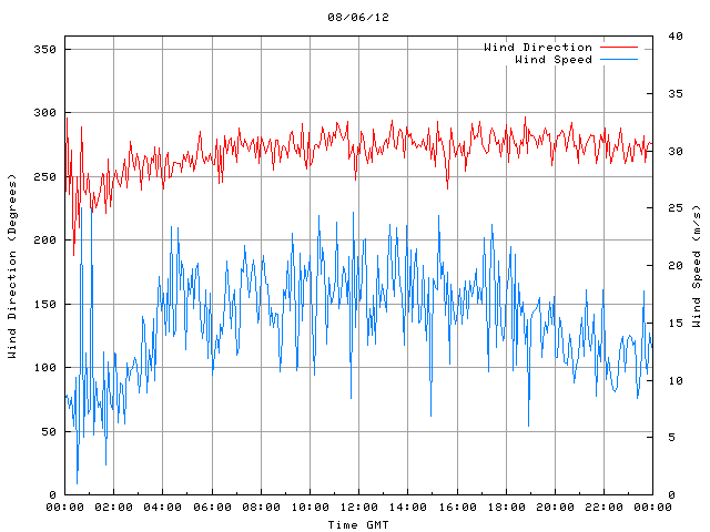 - Max Wind Speed: 25.0 ms-1 Time: 0:41:09 GMT