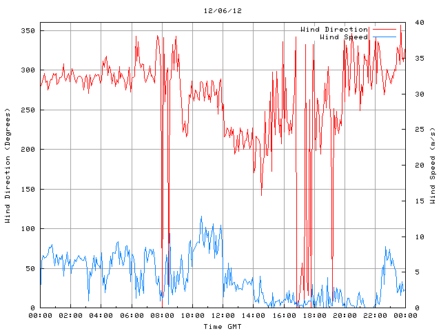 - Max Wind Speed: 12.9 ms-1 Time: 10:36:09 GMT