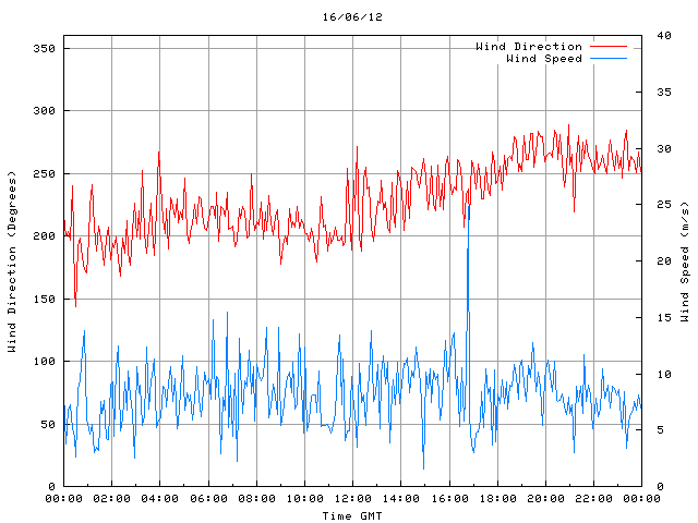 - Max Wind Speed: 24.8 ms-1 Time: 16:46:09 GMT