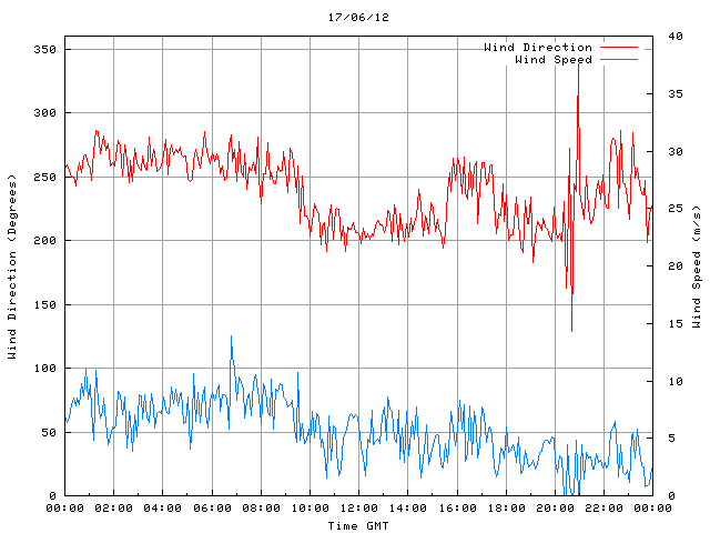 - Max Wind Speed: 13.9 ms-1 Time: 6:46:09 GMT