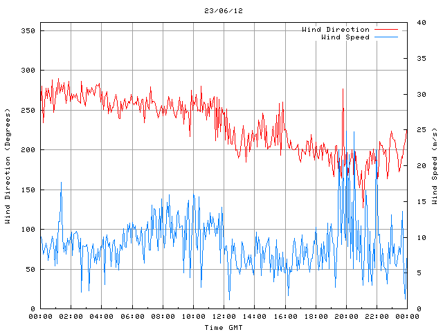 - Max Wind Speed: 24.8 ms-1 Time: 20:01:09 GMT