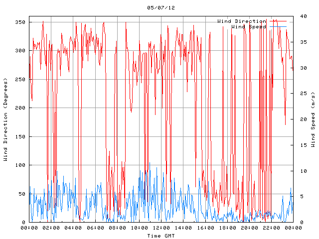 - Max Wind Speed: 11.6 ms-1 Time: 10:56:09 GMT