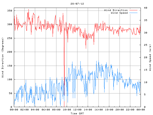 - Max Wind Speed: 18.8 ms-1 Time: 16:01:09 GMT