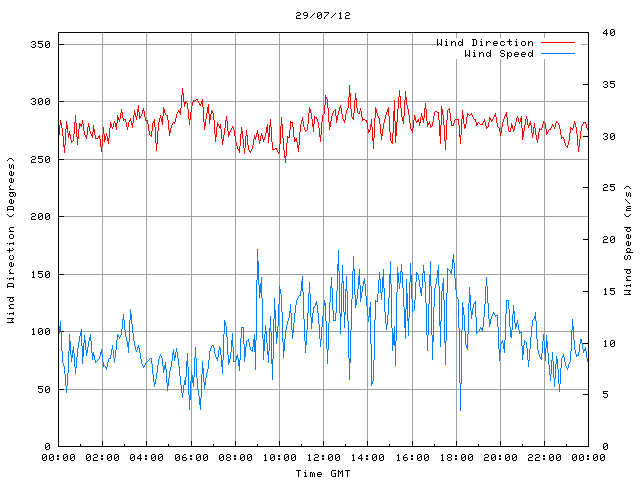 - Max Wind Speed: 19.0 ms-1 Time: 9:01:09 GMT