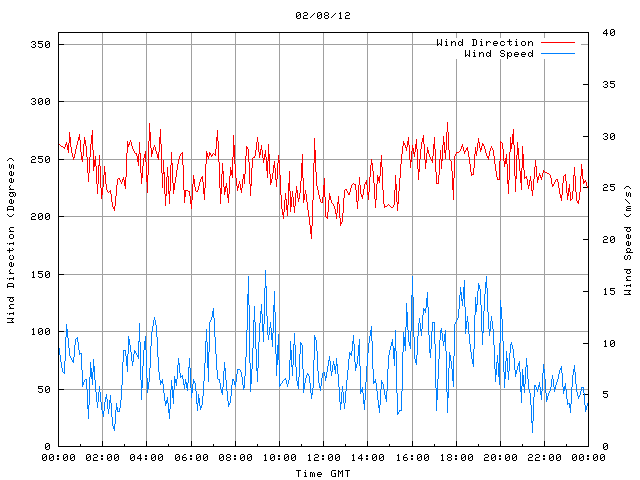 - Max Wind Speed: 17.1 ms-1 Time: 9:21:09 GMT