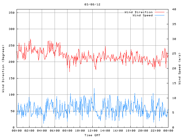 - Max Wind Speed: 13.2 ms-1 Time: 12:16:09 GMT
