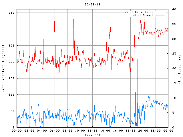 - Max Wind Speed: 10.7 ms-1 Time: 20:51:09 GMT