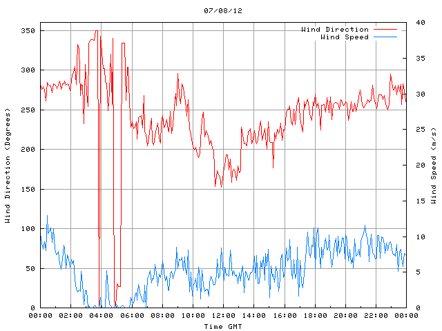 - Max Wind Speed: 13.0 ms-1 Time: 0:26:09 GMT