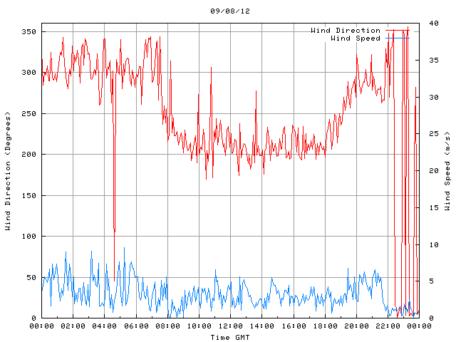 - Max Wind Speed: 9.6 ms-1 Time: 5:16:09 GMT