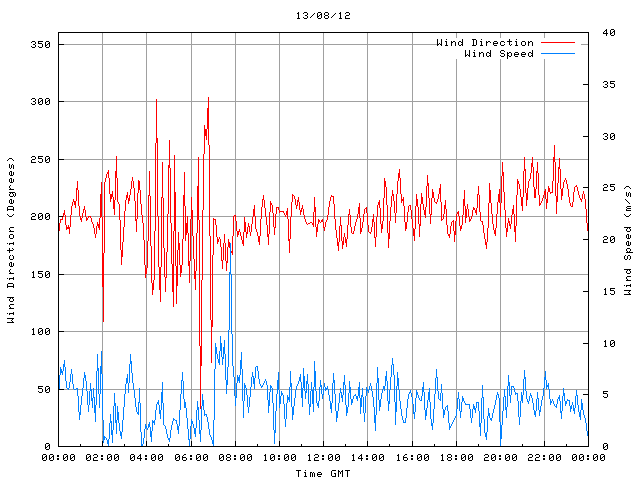 - Max Wind Speed: 19.6 ms-1 Time: 7:46:09 GMT