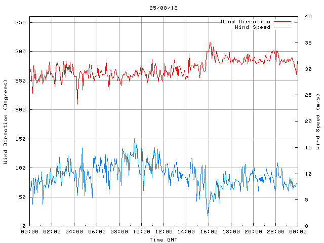 - Max Wind Speed: 16.7 ms-1 Time: 9:21:09 GMT