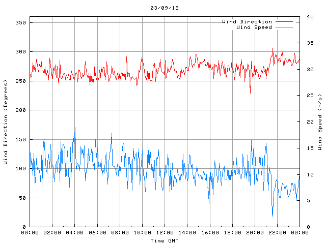 - Max Wind Speed: 18.9 ms-1 Time: 4:01:09 GMT