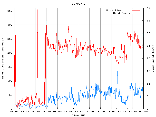 - Max Wind Speed: 14.8 ms-1 Time: 19:11:09 GMT