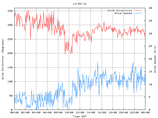 - Max Wind Speed: 19.0 ms-1 Time: 15:16:09 GMT