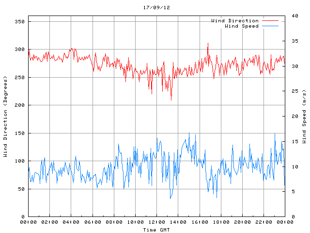 - Max Wind Speed: 16.7 ms-1 Time: 15:01:09 GMT