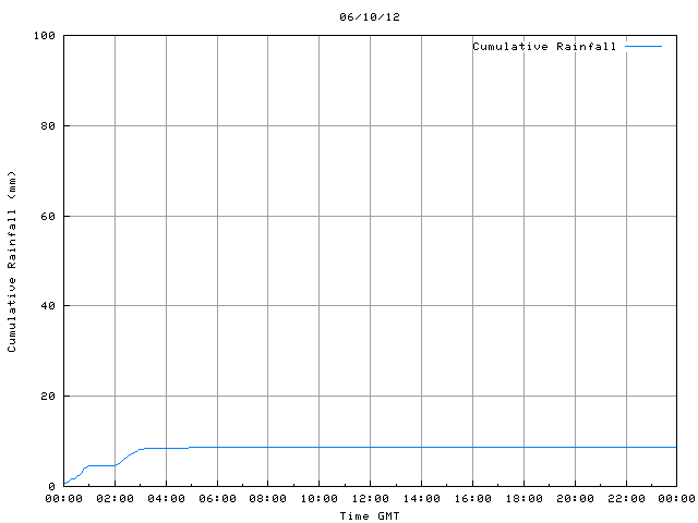 - Max Rainfall Rate: 9.00 mm h-1 Time: 0:46:09 GMT