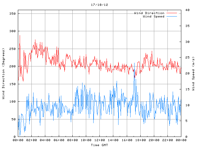 - Max Wind Speed: 23.2 ms-1 Time: 17:06:09 GMT