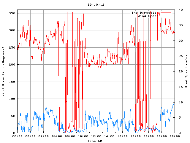 - Max Wind Speed: 9.6 ms-1 Time: 23:46:09 GMT