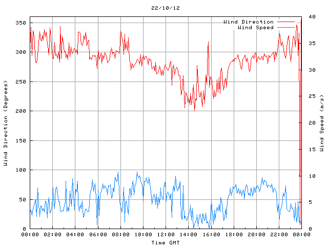 - Max Wind Speed: 10.8 ms-1 Time: 7:46:09 GMT
