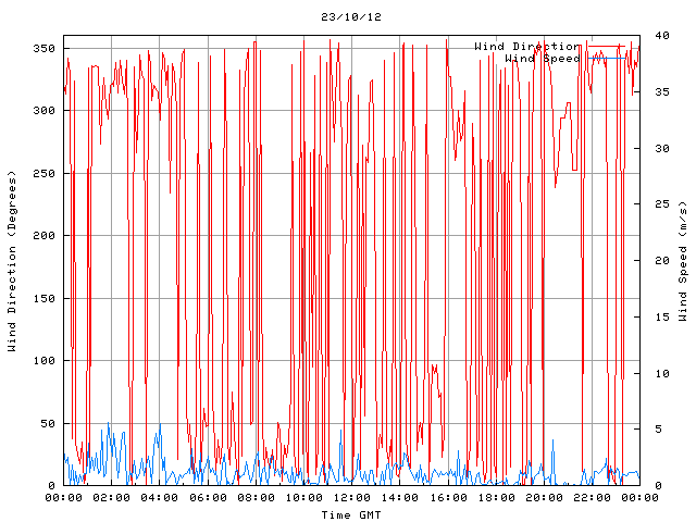 - Max Wind Speed: 5.6 ms-1 Time: 1:51:09 GMT