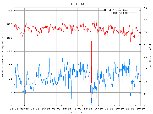 - Max Wind Speed: 21.2 ms-1 Time: 6:46:09 GMT