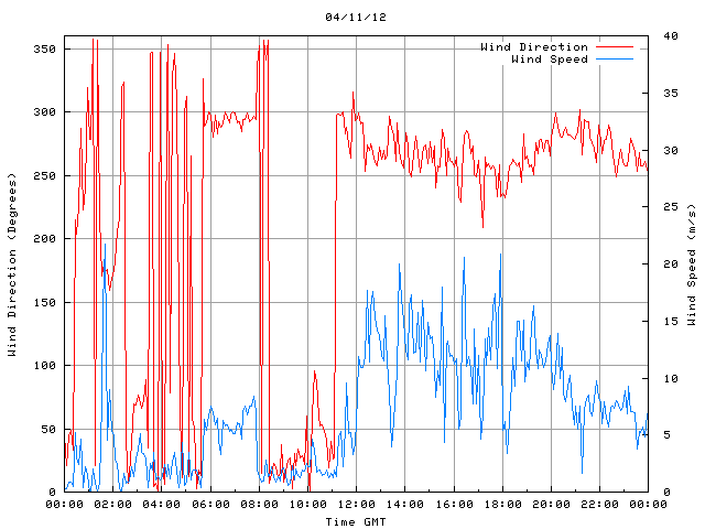 - Max Wind Speed: 21.7 ms-1 Time: 1:41:09 GMT