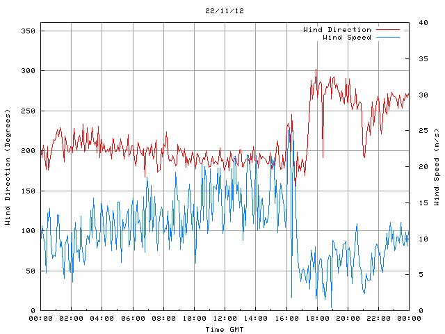 - Max Wind Speed: 25.0 ms-1 Time: 16:06:09 GMT
