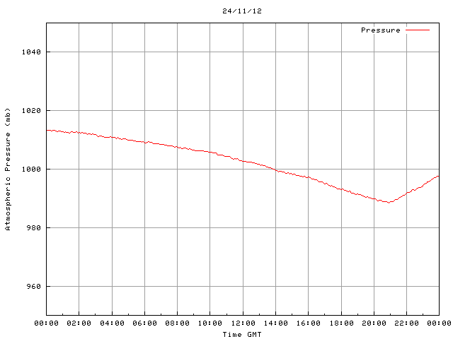The PML meteorological station, situated on the south-west corner of the building roof, consists of a Hygroclip S3 temperature and humidity sensor housed in a radiation shield, a Mierij Meteo solid state wind sensor (MMW-005), a Chelsea instruments half-hemisphere PAR sensor, a Li-Cor pyranometer (LI-200SZ) and an Omni Instruments 6" tipping bucket raingauge (RG200). The data are logged every 5 minutes using a Pace Scientific XR5 data logger. The real-time rainfall data is likely in error - the correct values will be displayed after a time lag of approximately 24 hours. The meteorological station is sheltered from winds in the north-east and underestimates winds from this quarter. To use these data please contact Dr Tim Smyth.