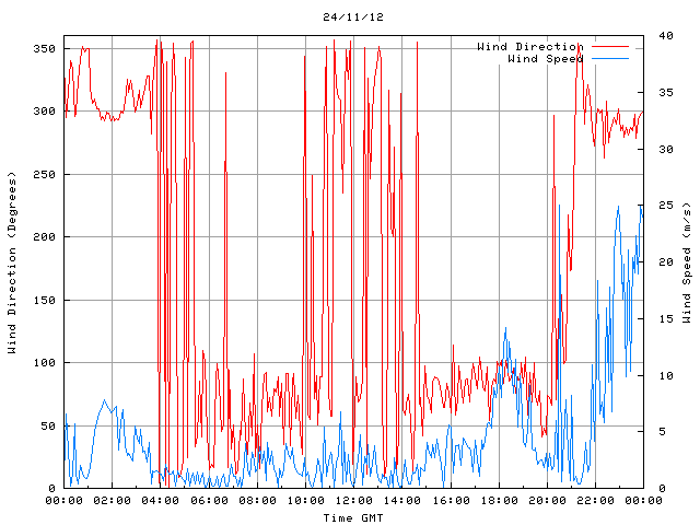 - Max Wind Speed: 25.0 ms-1 Time: 20:31:09 GMT