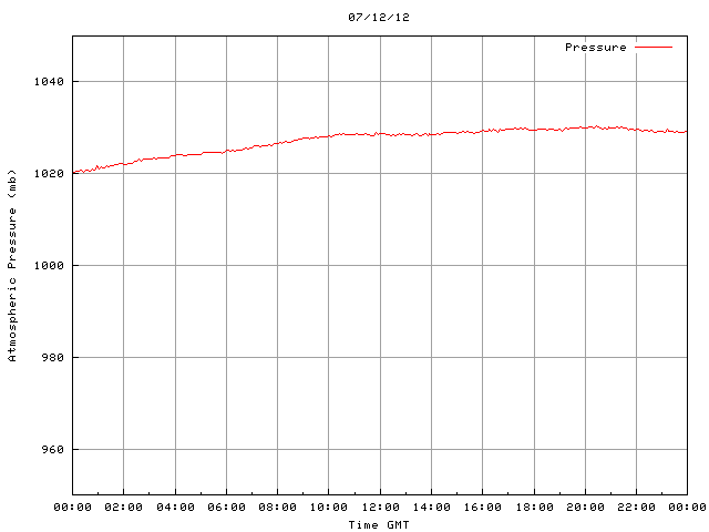 The PML meteorological station, situated on the south-west corner of the building roof, consists of a Hygroclip S3 temperature and humidity sensor housed in a radiation shield, a Mierij Meteo solid state wind sensor (MMW-005), a Chelsea instruments half-hemisphere PAR sensor, a Li-Cor pyranometer (LI-200SZ) and an Omni Instruments 6" tipping bucket raingauge (RG200). The data are logged every 5 minutes using a Pace Scientific XR5 data logger. The real-time rainfall data is likely in error - the correct values will be displayed after a time lag of approximately 24 hours. The meteorological station is sheltered from winds in the north-east and underestimates winds from this quarter. To use these data please contact Dr Tim Smyth.
