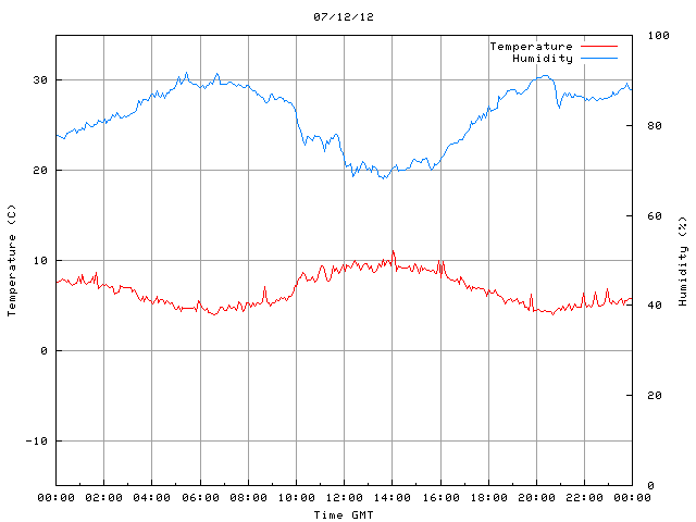 - Max Temp: 11.0 °C Time: 14:01:09 GMT