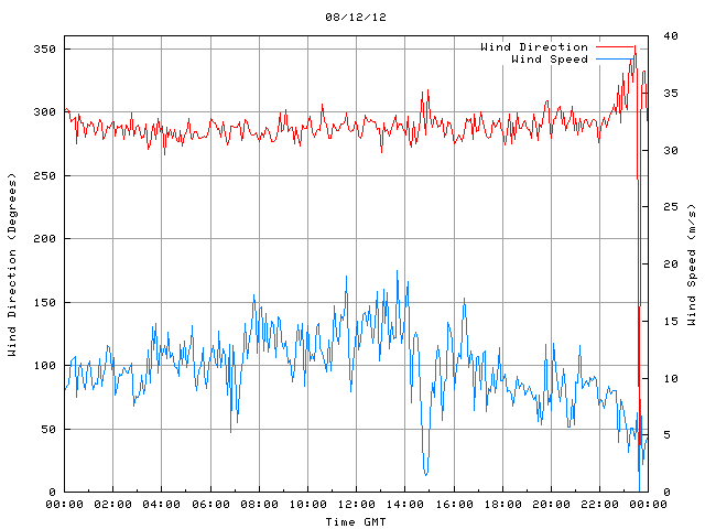 - Max Wind Speed: 19.4 ms-1 Time: 13:41:09 GMT