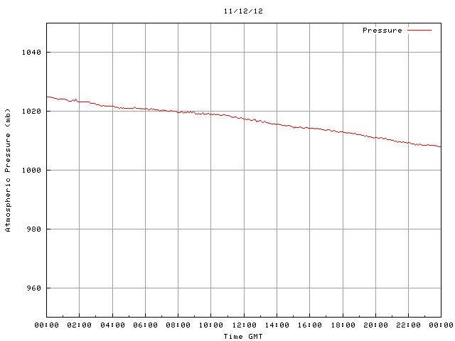 The PML meteorological station, situated on the south-west corner of the building roof, consists of a Hygroclip S3 temperature and humidity sensor housed in a radiation shield, a Mierij Meteo solid state wind sensor (MMW-005), a Chelsea instruments half-hemisphere PAR sensor, a Li-Cor pyranometer (LI-200SZ) and an Omni Instruments 6" tipping bucket raingauge (RG200). The data are logged every 5 minutes using a Pace Scientific XR5 data logger. The real-time rainfall data is likely in error - the correct values will be displayed after a time lag of approximately 24 hours. The meteorological station is sheltered from winds in the north-east and underestimates winds from this quarter. To use these data please contact Dr Tim Smyth.
