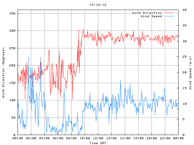 - Max Wind Speed: 25.0 ms-1 Time: 1:36:09 GMT