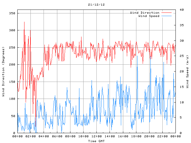 - Max Wind Speed: 25.0 ms-1 Time: 18:11:09 GMT