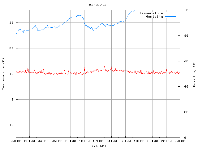 - Max Temp: 13.0 °C Time: 12:56:09 GMT