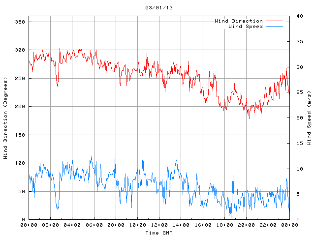 - Max Wind Speed: 12.3 ms-1 Time: 5:46:09 GMT