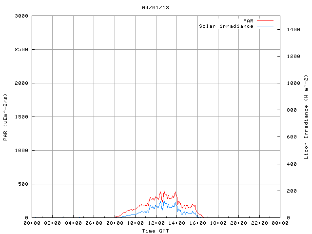 The PML meteorological station, situated on the south-west corner of the building roof, consists of a Hygroclip S3 temperature and humidity sensor housed in a radiation shield, a Mierij Meteo solid state wind sensor (MMW-005), a Chelsea instruments half-hemisphere PAR sensor, a Li-Cor pyranometer (LI-200SZ) and an Omni Instruments 6" tipping bucket raingauge (RG200). The data are logged every 5 minutes using a Pace Scientific XR5 data logger. The real-time rainfall data is likely in error - the correct values will be displayed after a time lag of approximately 24 hours. The meteorological station is sheltered from winds in the north-east and underestimates winds from this quarter. To use these data please contact Dr Tim Smyth.